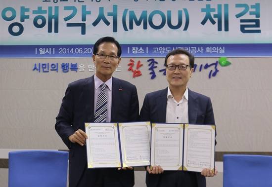 고양도시관리공사(사장 성주현)는 20일 고양시기업경제인연합회와 고양친환경자동차클러스터 조성사업의 민간기업 유치를 위한 양해각서(MOU)를 체결했다고 밝혔다.