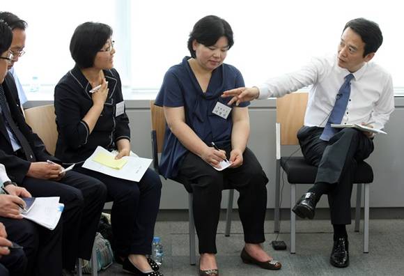 ▲남경필 당선인이 도지사후보 당시 공약으로 내세웠던 따복마을의 정책 실천을 위해 토론회를 열고 경기도 실무진과 지역주민들의 의견수렴과 실천방안을 위한 열띤 토론을 하고 있다.(사진=혁신위원회 제공)
