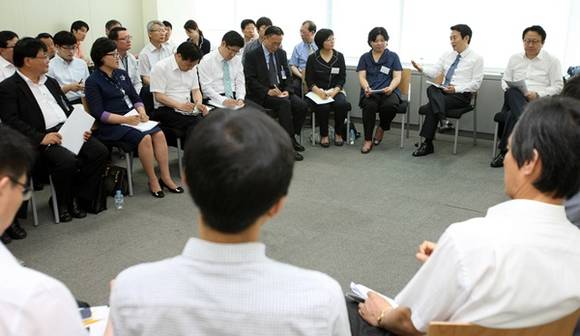남경필 경기도지사 당선인은 20일 혁신위원회 사무실에서 '따복마을'을 주제로 토론식 업무보고를 가졌다.