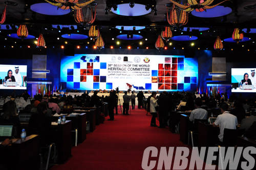 ▲카타르 도하에서 진행된 '제38차 세계유산위원회'회의 장면.(사진=문화재청)