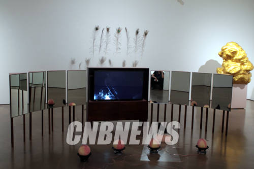 ▲양아치 작가의 '황금산' 설치 전경.(사진=왕진오 기자)