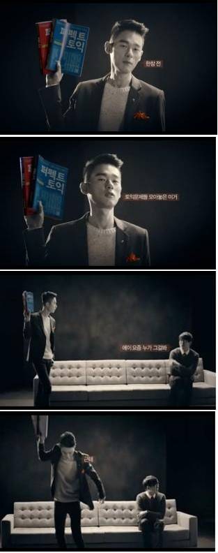 같은 기간 방영된 또 다른 광고에서는 바닥에 빨간색과 파란색 토익 교재 2권을 놓고 광고모델인 허지웅과 성시경이 높은 소파 위에 앉아 “영어공부를 12년이나 했잖아. 근데 아직도 토익이 영어라고 생각하는 사람이 있다니까”라고 대화하는 장면의 내보냈다.