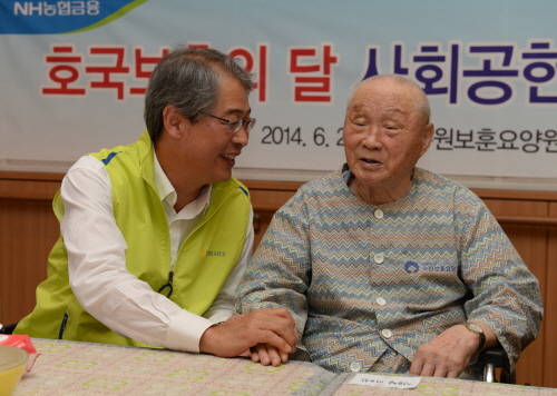 임회장과 농협금융 임직원들은 요양 중인 국가유공자들과 함께 주먹밥과 찐감자 등 전쟁음식을 직접 만들어 먹는 체험행사, 점심식사 수발, 발 마사지, 말벗봉사, 산책 동행, 프로그램활동보조 등 봉사활동을 실시했다.
