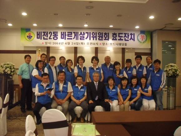 비전2동 바르게살기위원회는 해마다 12년째 비전2동 어르신들을 위한 경로잔치를 추진해 왔을 뿐만 아니라 매월 정기적으로 관내 보육원 학생들에게 점심식사 봉사를 지속적으로 해왔으며 틈틈이 지역에 사시는 홀로사시는 어르신들을 찾아 말벗봉사와 쌀, 생필품 지원 등 보이지 않는 곳에서 꾸준한 선행을 계속해 왔다.