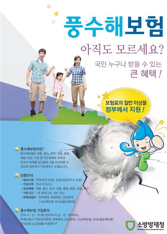 풍수해보험은 태풍, 홍수, 호우, 강풍, 대설 등 자연재해로 주택과 온실이 피해를 입었을 때 이를 보상받을 수 있도록 정부에서 지원해주는 보험이다.