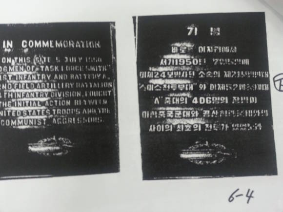 오산시(시장 곽상욱)는 6·25 한국전쟁 당시 UN군 중 최초로 참전해 오산 죽미령에서 북한군과 교전을 벌인 역사적 의미를 담아 지난 1953년 죽미령 고개 구 초전비에 새겨놓았던 동판이 분실된 지 반세기를 넘어 제자리로 돌아오게 됐다고 지난 27일 밝혔다.