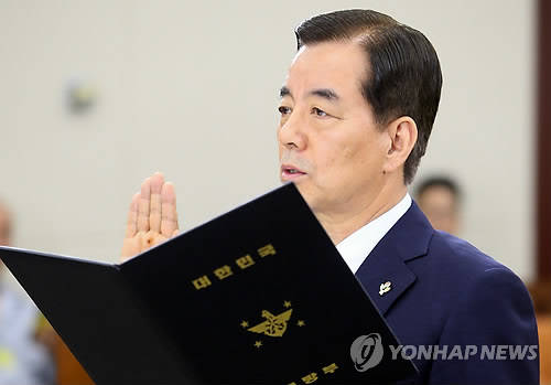 ▲한민구 국방부 장관 후보자가 29일 국회 국방위원회 인사청문회에서 선서하고 있다. (사진=연합뉴스)