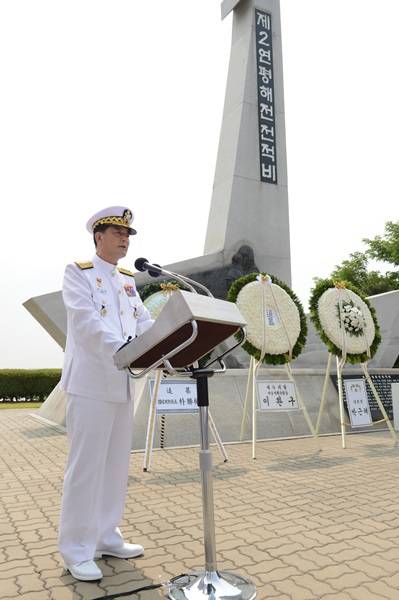 해군은 29일 해군 2함대 안보공원에 위치한 제2연평해전 전적비 앞에서'제2연평해전 12주년 기념식'을 거행했다.