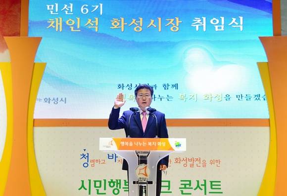 전국에서 가장 역동적인 모습으로 성장하는 화성시의 민선6기 시정을 책임질 채인석 화성시장의 취임식이 1일 시청 대강당에서 열렸다.