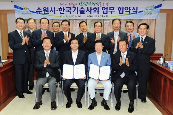 시청 집무실에 돌아온 염 시장은 전문기술을 현장에 적용하는 기술인 모임 한국기술사회와 안심도시 조성을 위한 양해각서를 체결한 뒤 곧바로 권선구 서둔동 과선교 건설현장을 점검했다.