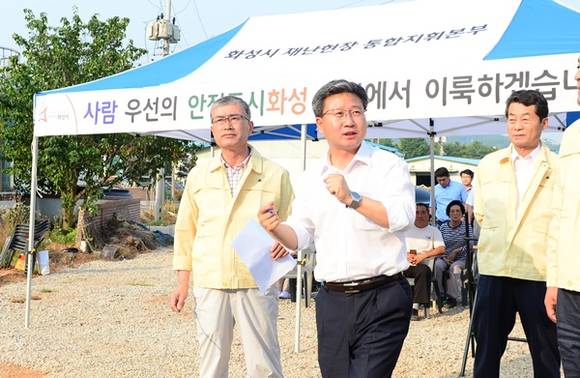 ‘사람이 먼저인 안전도시 구축’을 강조하는 채인석 화성시장은 취임식이 끝나자마자 집중호우로 주택2동, 공장 1동 등이 파손된 당하리 재해현장과 동탄2신도시 아파트 건축 현장을 찾았다.