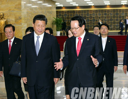 정의화 국회의장은 7월 4일 오전 국회접견실에서 정부 초청으로 국빈 방한 중인 중국 시진핑 국가주석과 면담하고 한반도 평화를 위한 협력강화 및 양국 의회 간 교류협력 증진방안 등 공동 관심사에 대해 의견을 나눴다.