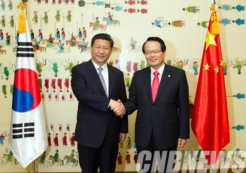 ▲정의화 국회의장은 7.4(금) 오전 국회접견실에서 정부 초청으로 국빈 방한 중인 중국 시진핑 국가주석과 면담하고 한반도 평화를 위한 협력강화 및 양국 의회 간 교류협력 증진방안 등 공동 관심사에 대해 의견을 나눴다.(사진=국회)