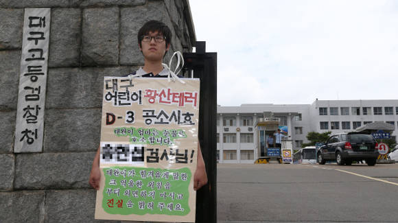 태완군 부모는 지난달 30일부터 대구지검 앞에서 1인 시위를 벌여오다가 담당 검사와의 면담 끝에 고소장을 낸 것으로 알려졌다.