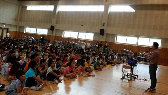 최병철 선수는 ‘꿈을 향해 고고 씽’ 이란 주제로 펜싱경기 방법 설명과 화성시청 펜싱팀 선수들의 종목별 시범경기 모습, 올림픽 경기 동영상을 보여주며 힘든 훈련을 이겨내 영광의 메달을 따기까지의 과정을 이야기로 전달해 학생들로부터 큰 호응을 받았다.