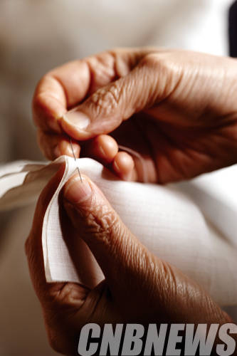 ▲한산모시조각보 작업 모습.(사진=CNB포토뱅크)