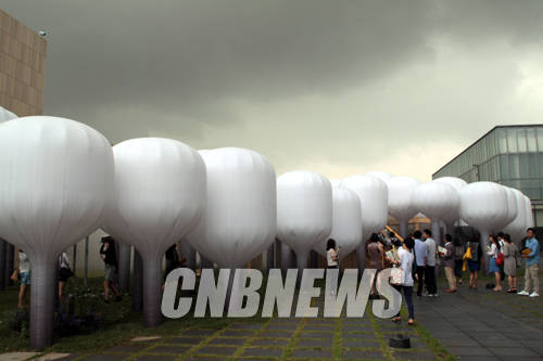 미술관 앞마당에서 설치된 프로젝트팀 문지방의 '신선놀이'작품은 오는 10월 5일까지 관람객들이 볼 수 있다.