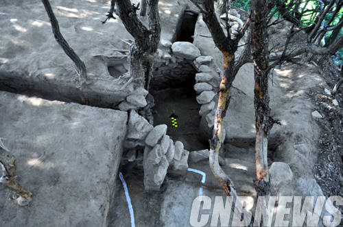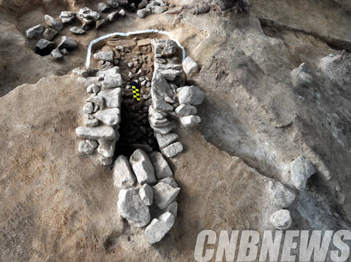 ▲전라북도 남원시 운봉면 북천리 고분 발굴현장에서 출토된 횡구식 석실묘.(사진=문화재청)