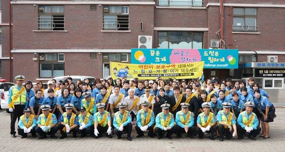 어린이 교통안전확보를 위한 캠페인에서 어린이 40여명은 스쿨존내 신호위반, 불법주정차 금지, 차선지키기 등 교통법규준수를 나타내는 피켓을 만들어 학교 앞을 지나가는 차량 운전자를 상대로 홍보했다.