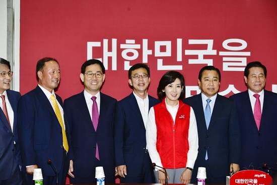 ▲홍철호 후보가 공천장을 받은 후 기념촬영하고 있다.