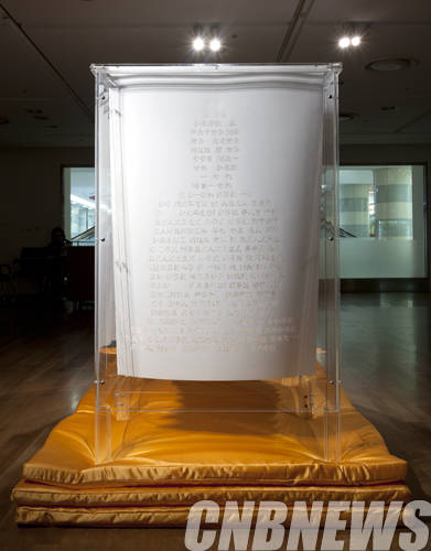 전시장에 설치된 반야심경 작품은 2007년에 작업했던 금강경과 같이 자기 수양의 일환으로 오리고 새기는 작업을 진행한 과정의 결과물이다.