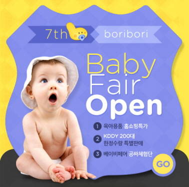 '제7회 보리 베이비페어'는 오는14일(월)부터 8월 3일(일)까지 진행되는 유아동 종합쇼핑몰 보리보리의 최대규모 '베이비페어 프로모션 행사'다.