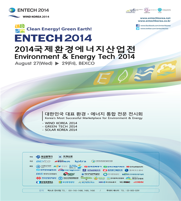 (CNB=최원석 기자) 부산시는 오는 8월 27일부터 29일까지 해운대 벡스코에서 ‘2014 국제환경·에너지산업전(ENTECH 2014)’을 280개社 750부스 규모로 개최할 예정이라고 15일 밝혔다.