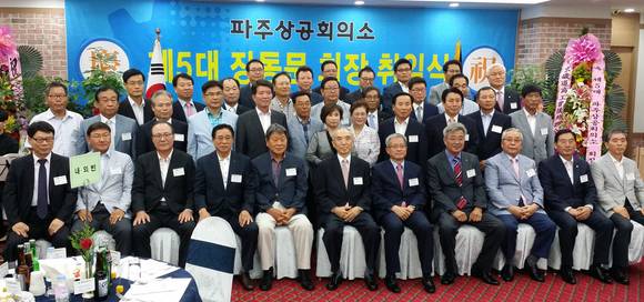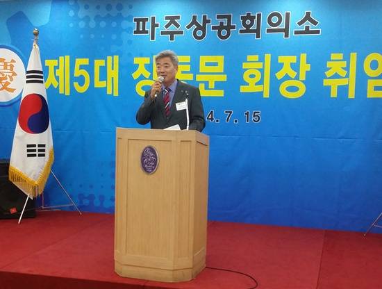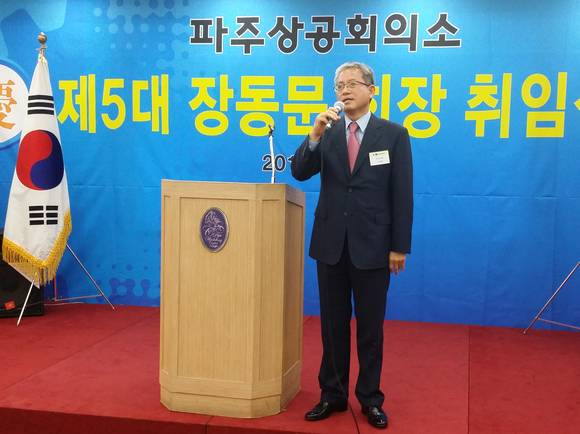 지난 15일 오후 5시 4층 연회장에서 개최된 파주상공회의소 제5대 회장 최임식에서 장동문 회장은 이같이 말하며 "시와 유관기관들의 많은 협조를 바란다"고 언급했다.