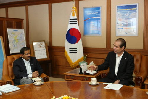 발루 이에르(사진 왼쪽) 신임 세계협동조합연맹(ICA: International Cooperatives Alliance) 아시아태평양지역 사무총장이 17일 수협중앙회를 방문해 이종구 ICA 수산위원장(한국 수산업협동조합중앙회장, 사진 오른쪽)을 예방하고 수산업 분야 발전과 협력방안에 대해 논의했다.
