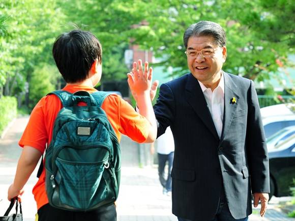 이 교육감은 특히 저학년 학생들의 눈높이에 맞추고자 몸을 낮게 하며 하이파이브 인사를 나누며 어린 학생들의 ‘좋은 하루’를 당부했다. 이 교육감의 ‘현장 속으로’ 행보는 지난 1일 수원 이목중, 9일 용인 수지고에 이어 이번이 세 번째다.