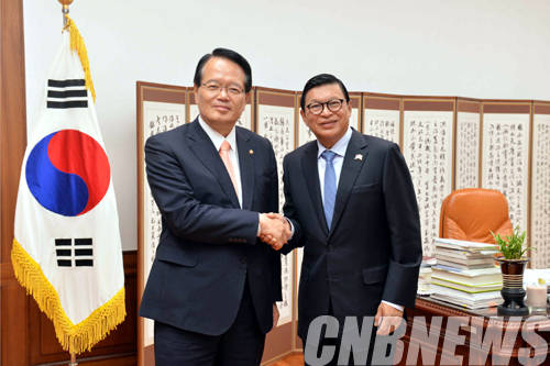 ▲정의화 국회의장은 7월 18일 오전, 존 쁘라스띠오 주한인도네시아 대사를 시작으로 팜 후 치 주한베트남 대사, 오후에는 니콜로즈 아프카자와 주한조지아 대사, 할릴 알-모사위 주한이라크대사, 패트릭 존 라타 주한뉴질랜드 대사의 예방을 차례로 받았다(사진=국회)