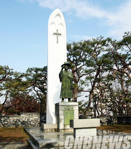 ▲'당진 솔뫼마을 김대건신부 마을의 동상'.(사진=문화재청)