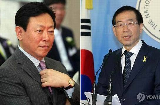 ▲제2롯데월드 저층부 임시사용을 놓고 서울시와 롯데가 신경전을 벌이고 있다. 신동빈 롯데그룹 회장(왼쪽)이 지난 4일 롯데백화점 본점에서 열린 ‘프렌치위크’ 오픈 행사에 참석하고 있다. 박원순 서울시장(오른쪽)이 6·4 지방선거 출마선언 기자회견에 ‘안전 서울’을 강조하고 있다. (사진=연합뉴스)