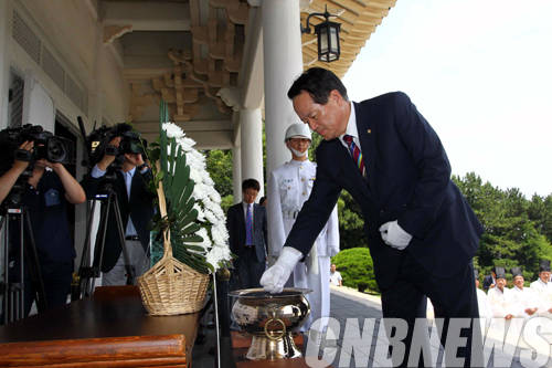 ▲정의화 국회의장이 22일 부산을 공식 방문한 가운데 부산 충렬사를 방문해 임진왜란 때 순절하신 호국영령에 대하여 참배하고 있다.(사진=국회)