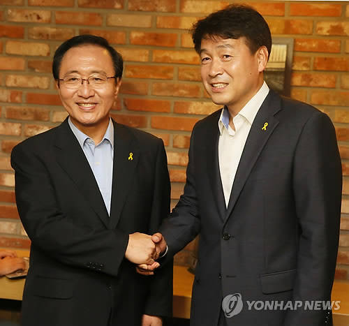 ▲77·30 서울 동작을 보궐선거에 출마한 새정치민주연합 기동민(오른쪽) 후보와 정의당 노회찬 후보가 야권후보 단일화 협상을 위해 23일 오후 2시30분 경 서울 사당동의 한 커피숍에서 만나 1시간 가량 회동 했으나 단일화 방식에 대한 이견을 좁히지 못해 최종합의에 실패했다. (사진=연합뉴스)