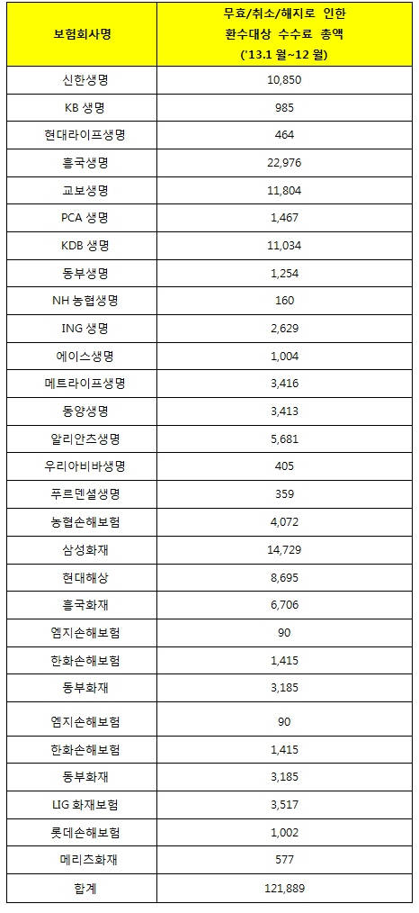 흥국생명·삼성화재·교보생명 등 국내 26개 보험사가 2013년 한 해 동안 보험설계사들에게 수당으로 지급한 약 1200억원을 보험이 해지·취소됐다는 등의 이유로 환수한 것으로 나타났다.