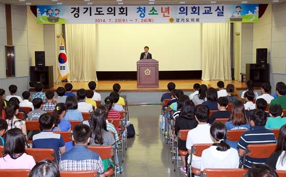 청소년들이 지방의회의 기능과 역할을 배우고 민주적 회의절차를 체험할 수 있는'2014년 청소년 의회교실'이 23일 경기도의회(의장 강득구)에서 개최되었다.