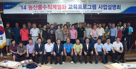 NH농협은행 이천시지부(지부장 전한식)는 지난 21일 호법농협 2층 회의실에서 2014년 『이천시 농산물유통수직계열화 교육프로그램 사업설명회』를 개최했다.