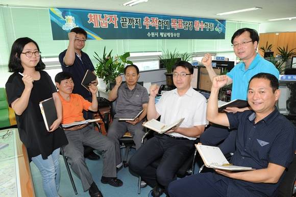 수원시는 지난 2월 전국 처음으로 직원 7명으로 체납세징수단을 설치하고 징수 업무를 전담시켰다. 징수단에는 한국자산관리공사,한국신용평가,여신전문금융회사 등의 베테랑 경력자 4명을 합류시켜 재산추적 전문성을 강화했다.