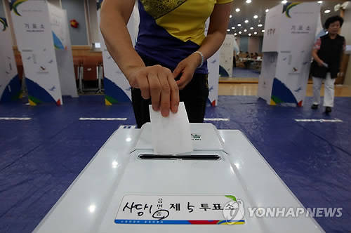 ▲서울 동작구 사당1동 주민센터에 마련된 투표소에서 유권자들이 투표를 하고 있다.(사진=연합뉴스)