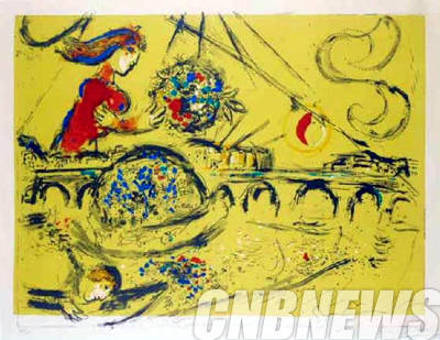 특히 야수파의 강력한 색채와 큐비즘의 공간 개념에 영향을 받았으면서도 독특한 색책와 낭만적인 작품으로 한국인은 물론 전세계인이 사랑하는 20세기의 가장 로맨틱한 화가로 칭송받는 샤갈(1887∼1985)의 판화가 눈길을 모은다.