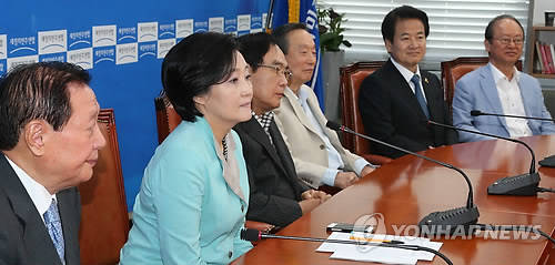 ▲새정치민주연합 박영선 원내대표와 상임고문들이 1일 국회 원내대표실에서 7·30재보선 참패에 대한 대책과 당의 진로를 논의하기 위한 비대위 구성 비상회의를 기다리며 앉아 있다. 이날 비상회의에는 임채정 정동영 김원기 이부영 김상현 이용희 권노갑 송영오 정대철 한명숙 상임고문 등이 참석했다(사진=연합뉴스)