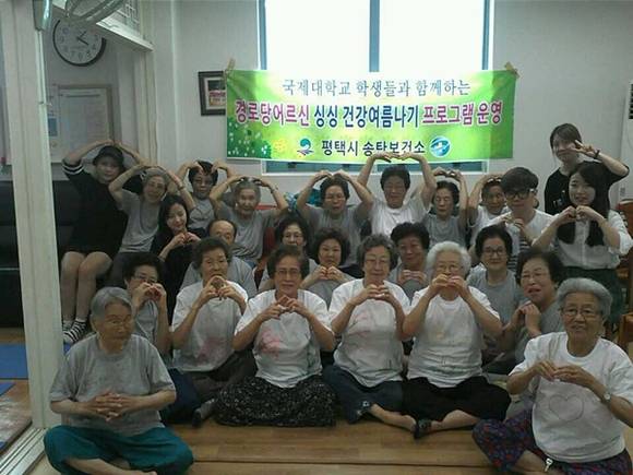평택시에서는 어르신들의 일상생활의 휴식공가인 경로당을 활용 보건소 방문간호 전문 인력 및 관내 국제대학교 자원봉사자로 구성된 건강 관리팀을 구성하여 경로당어르신 싱싱- 건강여름나기 프로그램을 운영, 무더위에 지친 어르신들께 삶의 활력소를 제공하고 있다.