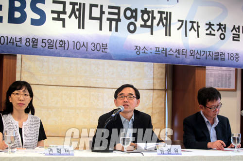 ▲5일 서울 태평로 프레스센터 외신기자클럽에서 제11회 EBS 국제다큐영화제 설명회가 열렸다. 이날 함께한 류현위 집행위원장이 2014 EBS 국제다큐영화제 출품작에 대해 설명하고 있다.(사진=왕진오 기자)