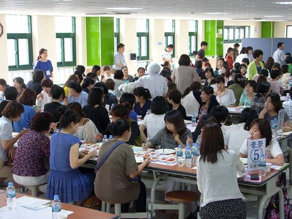 이날 평가에는 대기업,지역 업체,김치 명장 등 학교급식 김치 공동구매 15개 업체로부터 평가위원 96명이 참석했다.