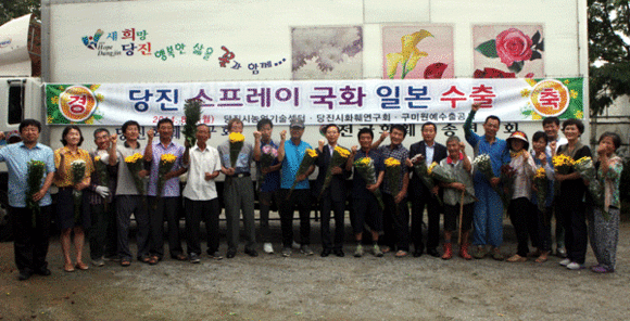 6일 당진시에 따르면 "4일 진행된 출하식에서는 성공적인 일본 수출을 기원하는 한편 당진 국화를 수출하기 위해 노력한 당진화훼연구회(회장 이효용) 회원들이 한자리에 모여 축하하는 시간을 갖기도 했다"는 것이다.