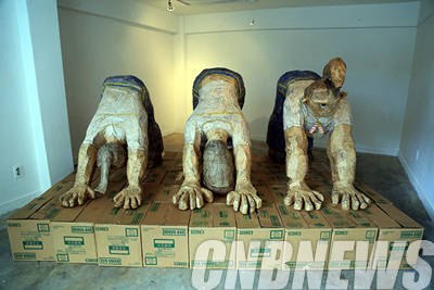 이번 전시에는 그녀의 일터, 맥도날드에서 감자를 튀기고 난 뒤 버려지는 텅 빈 감자봉지와 폐휴지들을 수집해 만든 '견상(犬狀)자세 중인 알바생'외에 설치 조형물 70여 점을 전시장에 펼쳐 놓았다. 전시는 30일까지.
