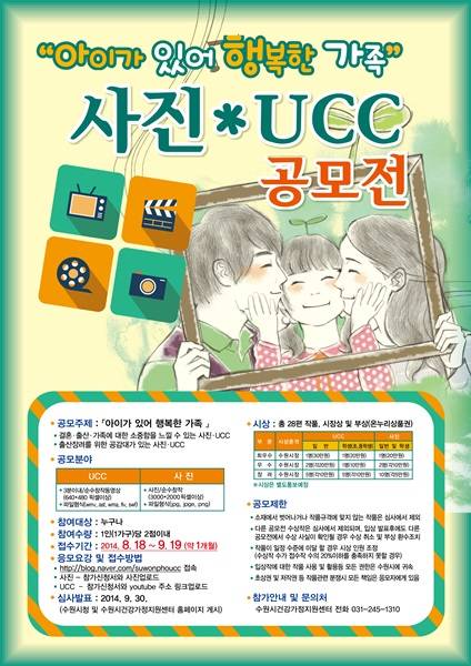 수원시(염태영 시장)가 출산 양육 친화분위기 조성을 위해 ‘아이가 있어 행복한 가족’이라는 주제로 사진, UCC 공모전을 개최한다.