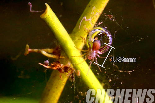이번에 증식된 새끼 물거미(학명: Argyroneta aquatica)는 크기가 평균 1.55mm로, 오백원짜리 동전보다 약 500배 더 작은 크기이다.