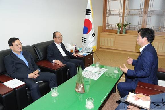 염태영 수원시장이 지난 13일 대통령소속 지방자치발전위원회 심대평 위원장을 방문해 현 정부 국정과제로 채택된 ‘인구 100만 이상 대도시 특례 방안 마련’에 대한 조속한 추진을 건의했다.